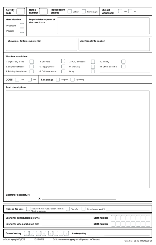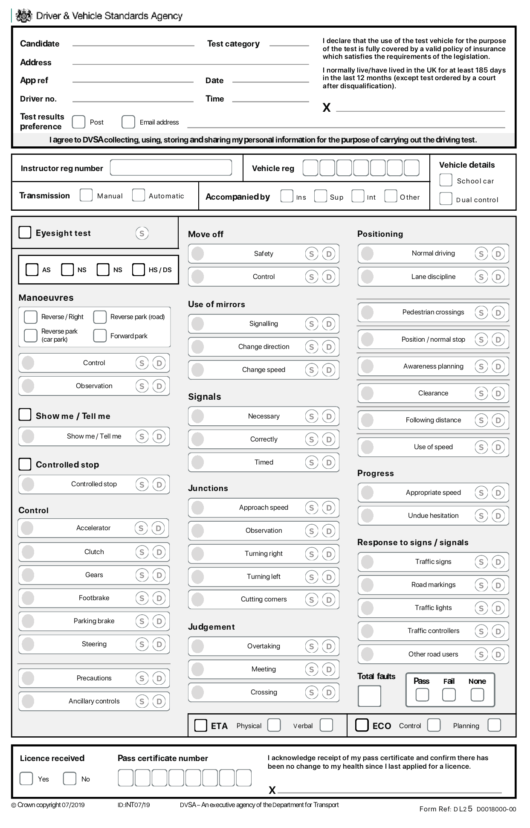 Useful Information From DVSA - Test Mark sheet DL25 and explanation